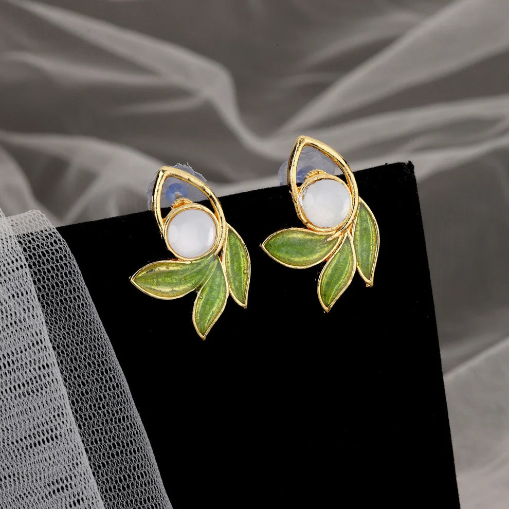 Product Name: Gold-Toned Floral & Oval Motif AD Stone Necklace & Drop Earrings Set